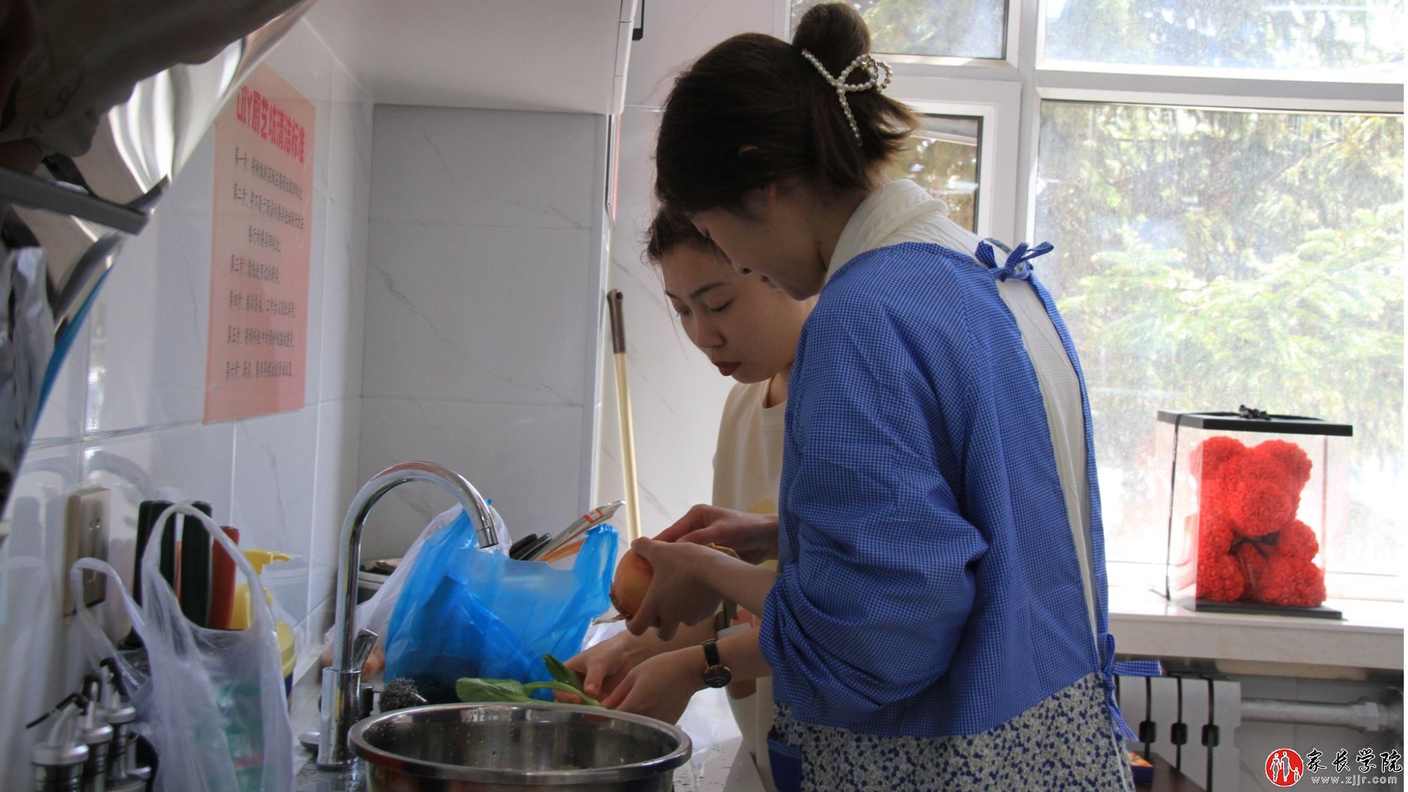 同学们在厨房忙碌(央广网发 吕鸿浩 摄)
